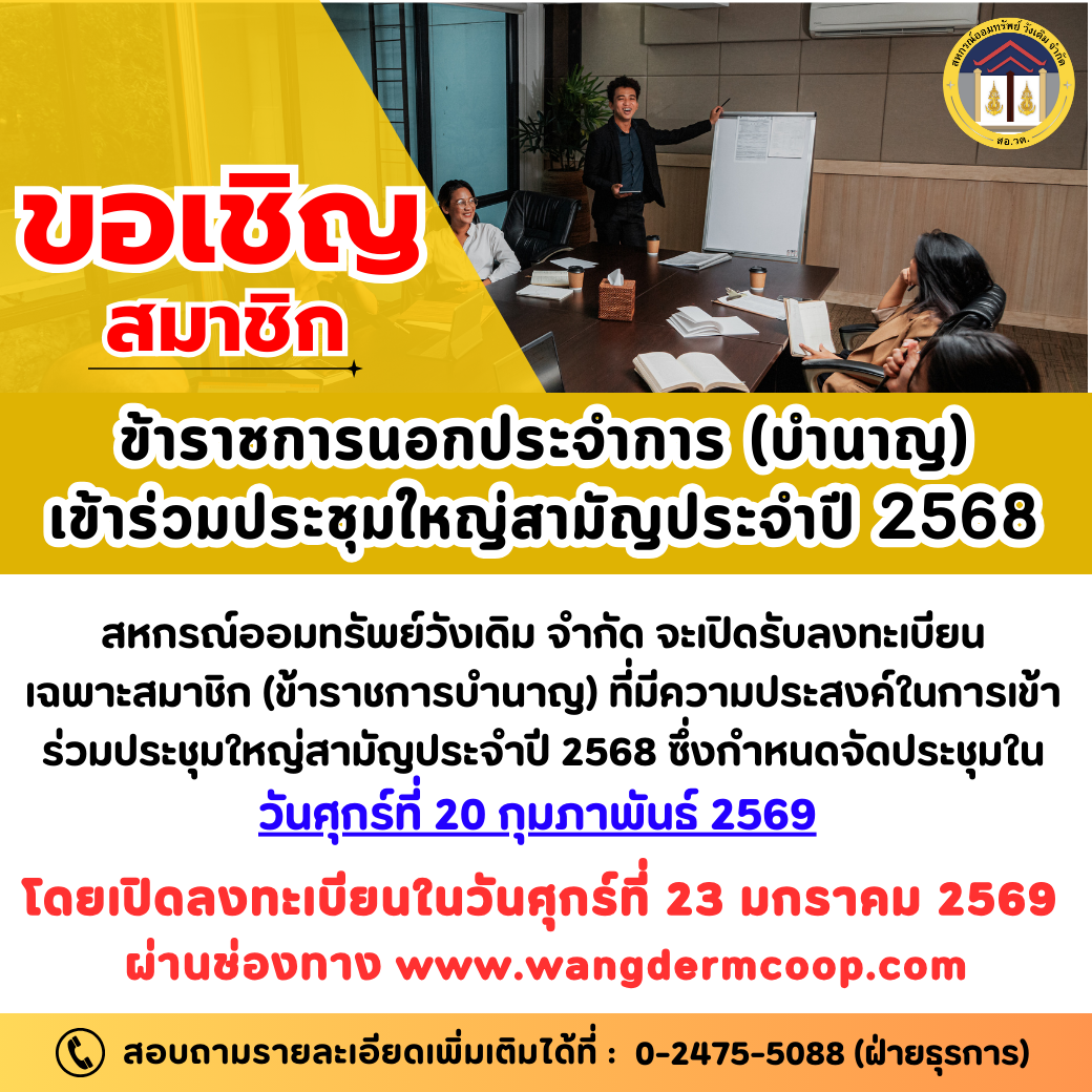 ขอเชิญสมาชิก ข้าราชการบำนาญเข้าร่วมประชุมใหญ่สามัญประจำปี 2568