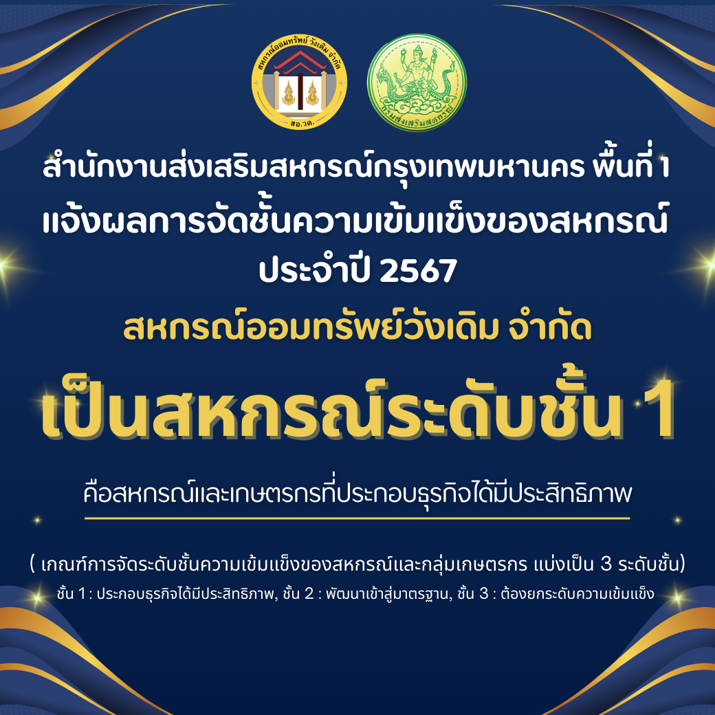 แจ้งผลการจัดชั้นความเข้มแข็งของสหกรณ์ ประจำปี 2567