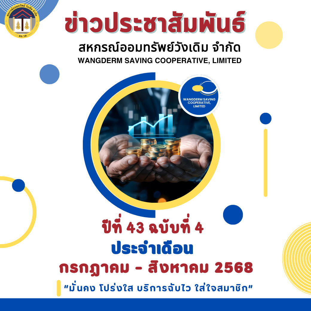 ข่าวประชาสัมพันธ์ สหกรณ์ออมทรัพย์วังเดิม จำกัด ปีที่ 43 ฉบับที่ 4 ประจำเดือน ก.ค. - ส.ค.68